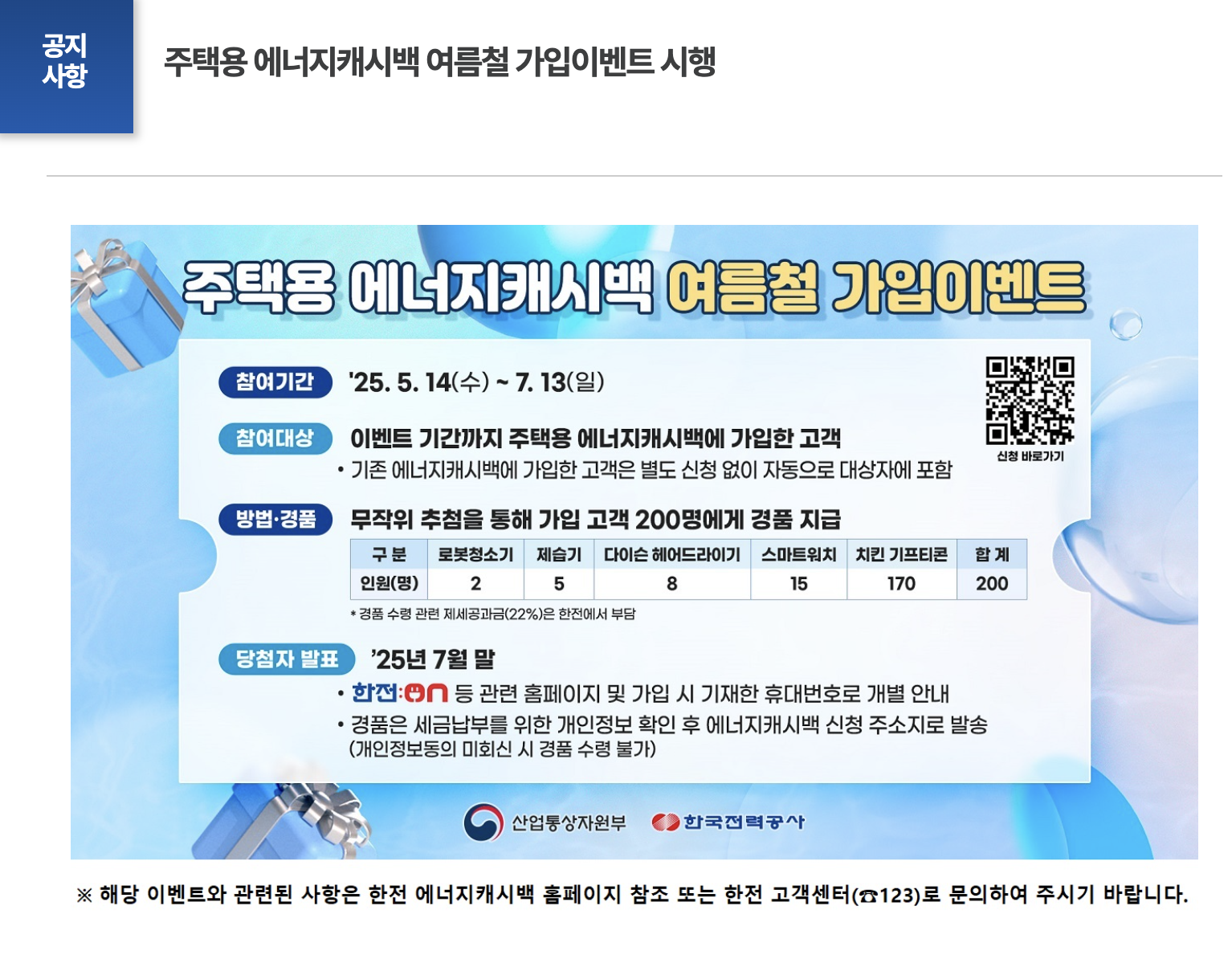 위 3가지를 모두 만족한다면, 지금 바로 에너지캐시백 이벤트에 참여할 수 있습니다! 여름철 냉방비 부담을 줄이고, 정부 지원 혜택도 함께 누려보세요.
