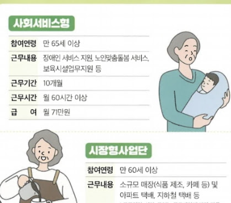 | 사회서비스형/시장형/취업알선형 | 만 60세 이상(소득 수준에 관계없이 가능) |