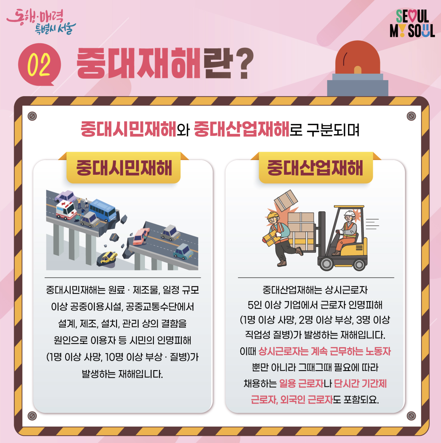 중대재해는 크게 두 가지 유형으로 나뉩니다: