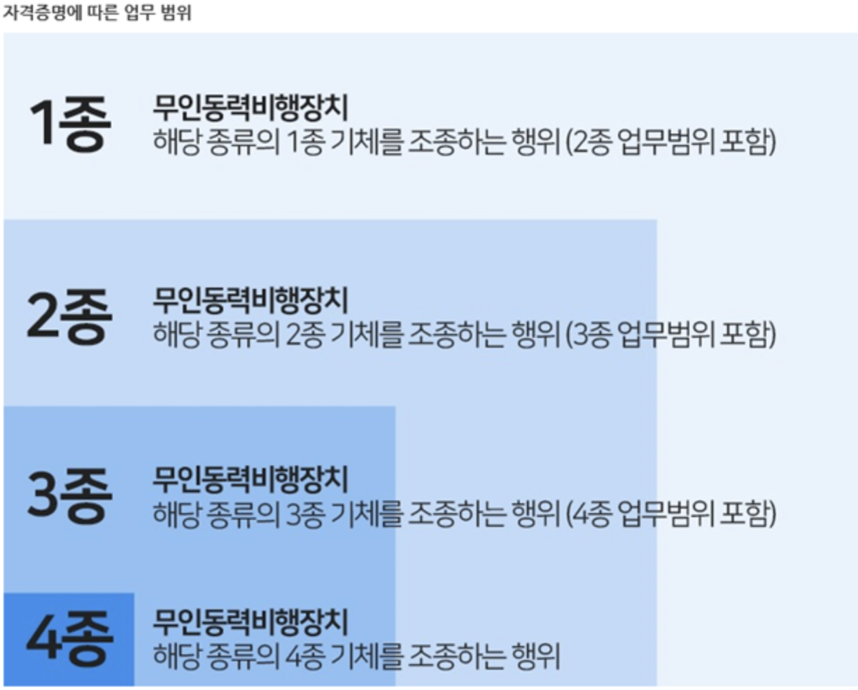 | 자격증 종류 | 1·2·3·4종별 드론 무게 및 응시 요건 |