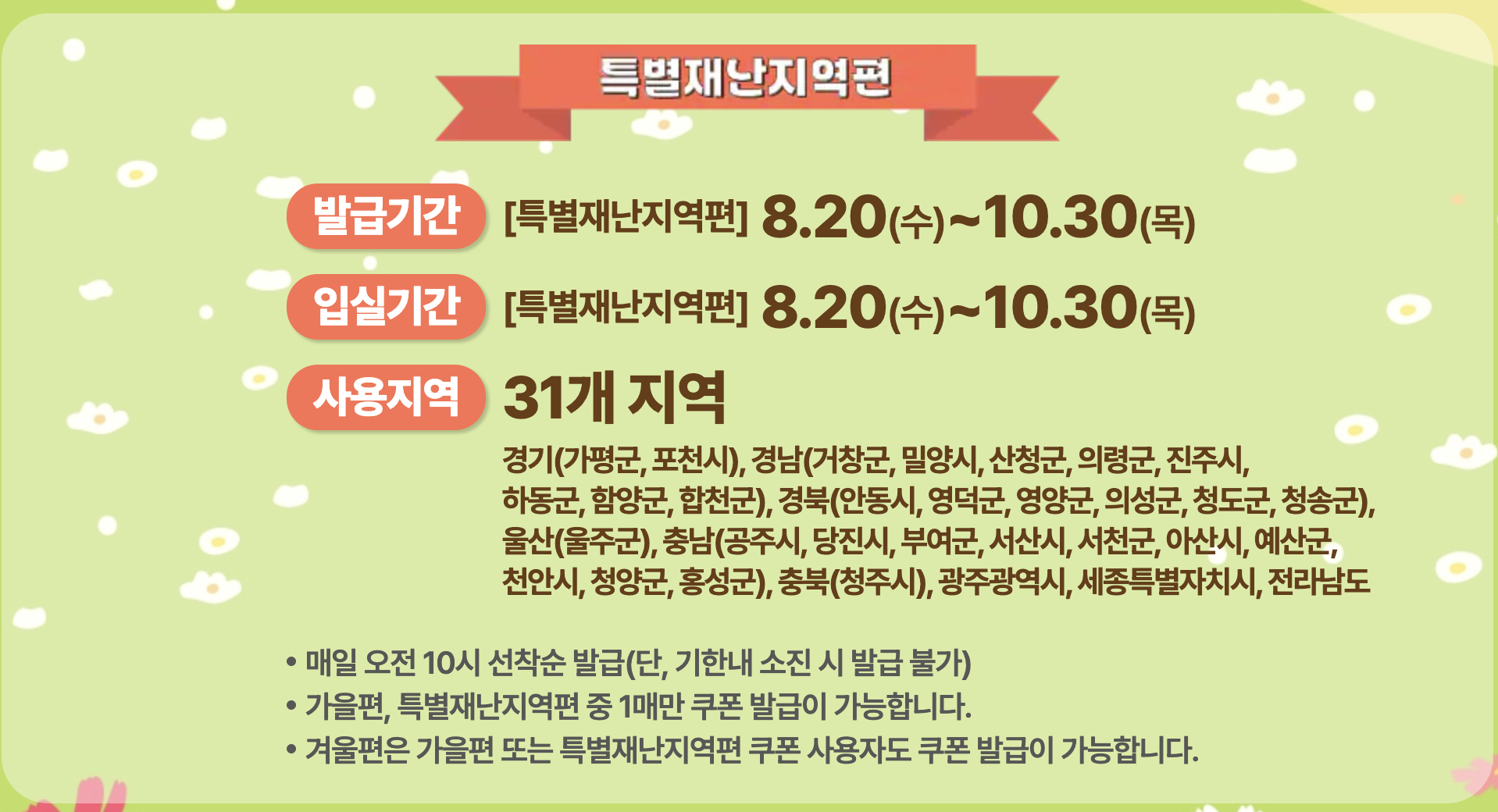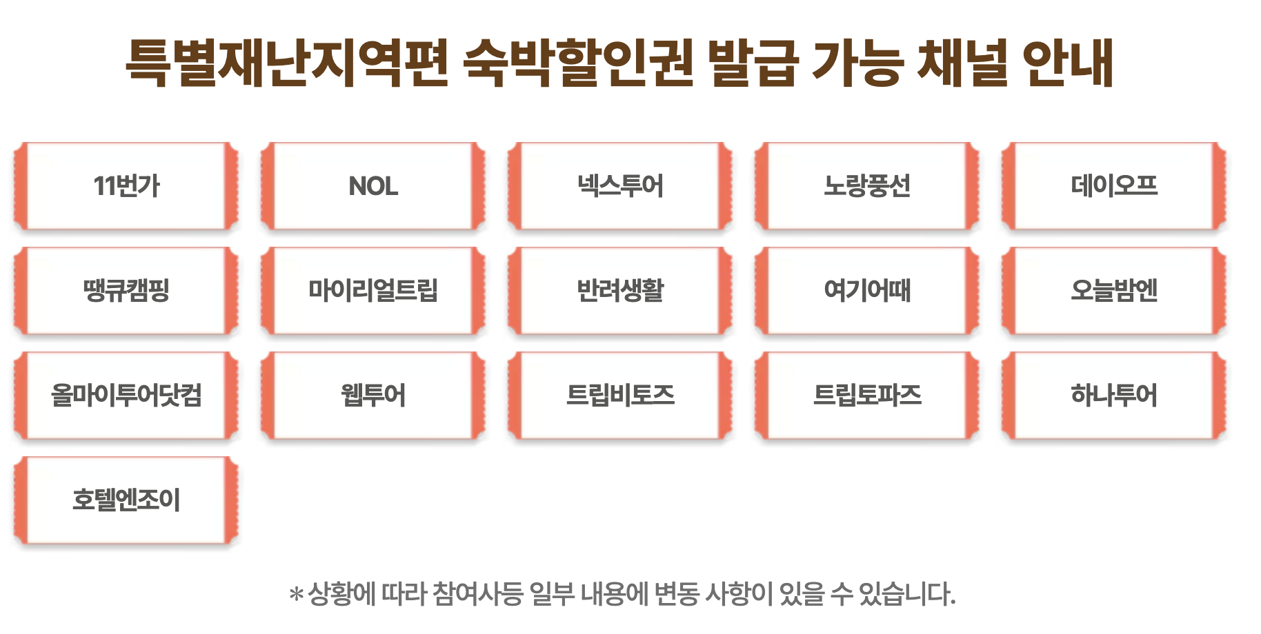- 특별재난지역 숙박상품: 최대 5만 원 할인 제공