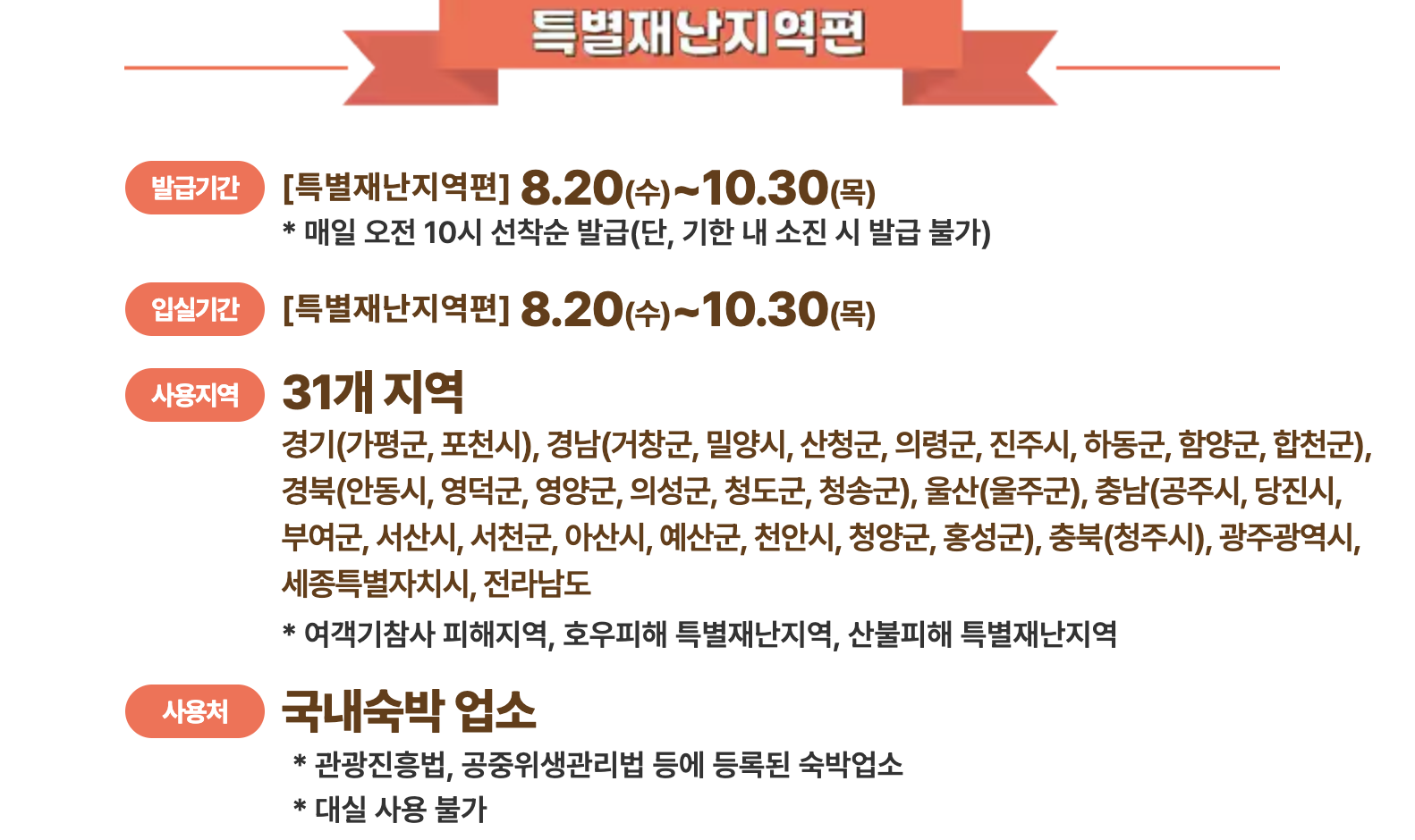 - 대상: 정부가 지정한 특별재난지역 내 숙박상품