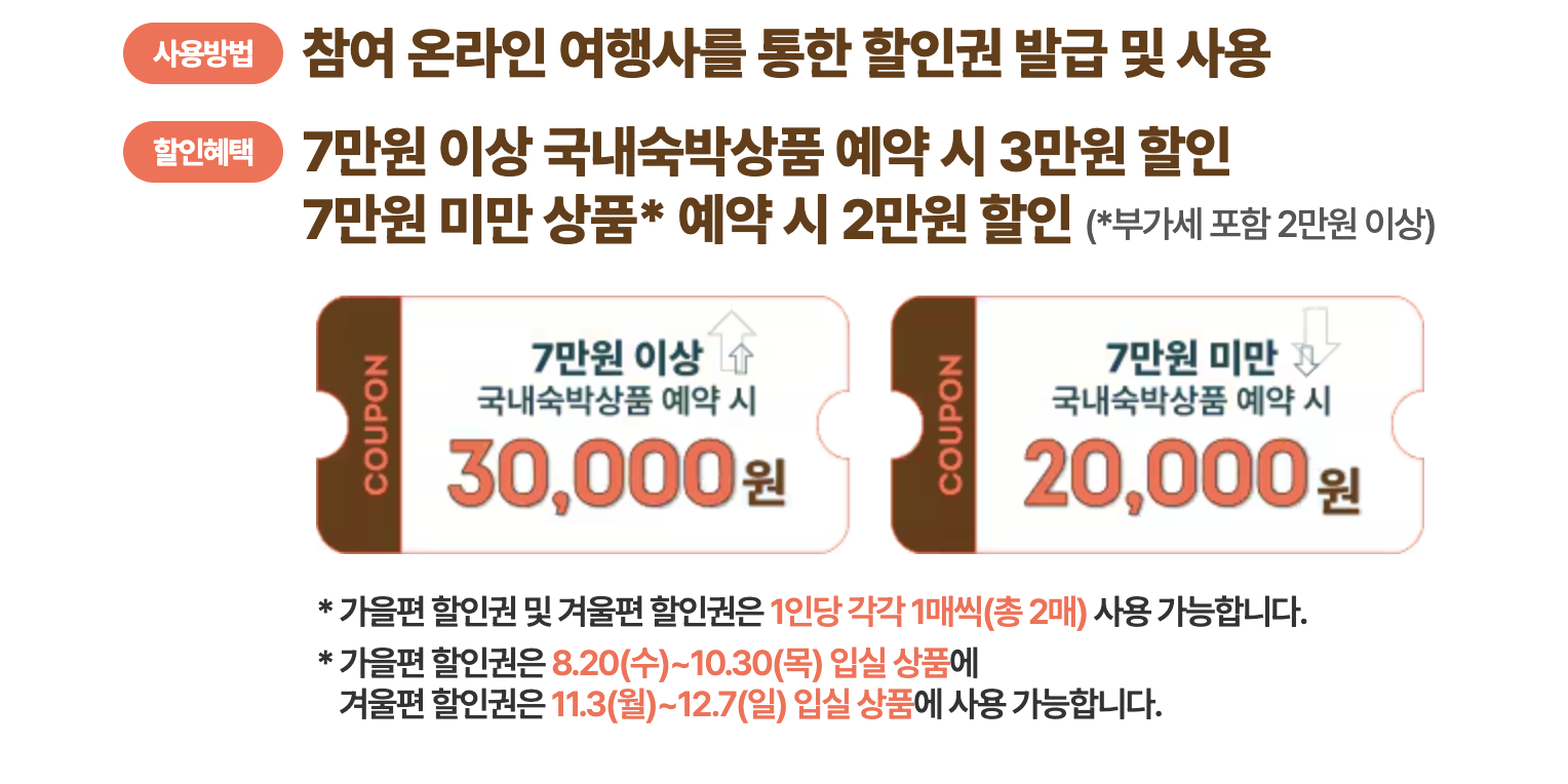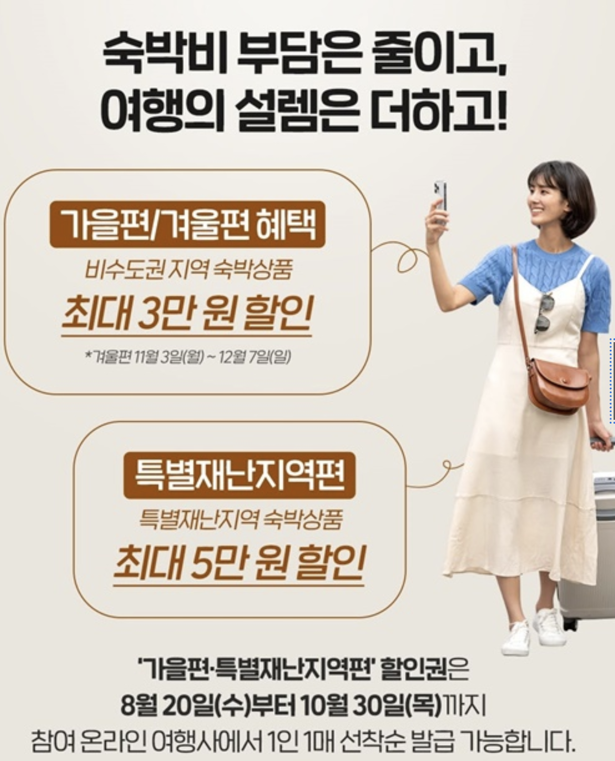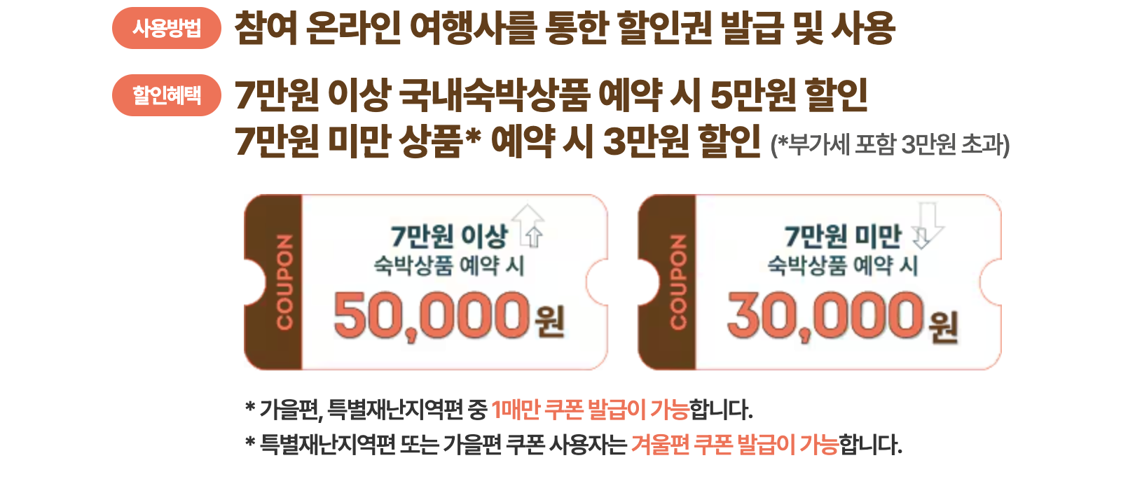 - 비수도권 지역 숙박상품: 최대 3만 원 할인 제공