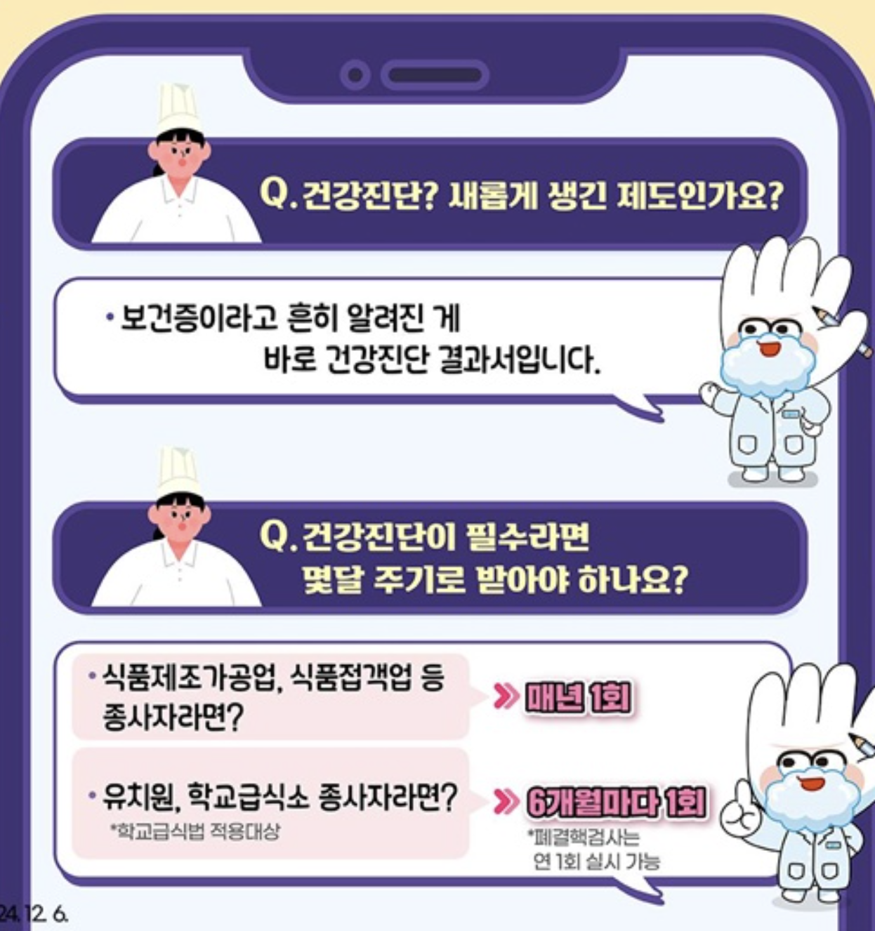 2) 검사 항목: 장티푸스, 폐결핵, 전염성 피부질환 등 위생 관련 기본 검진