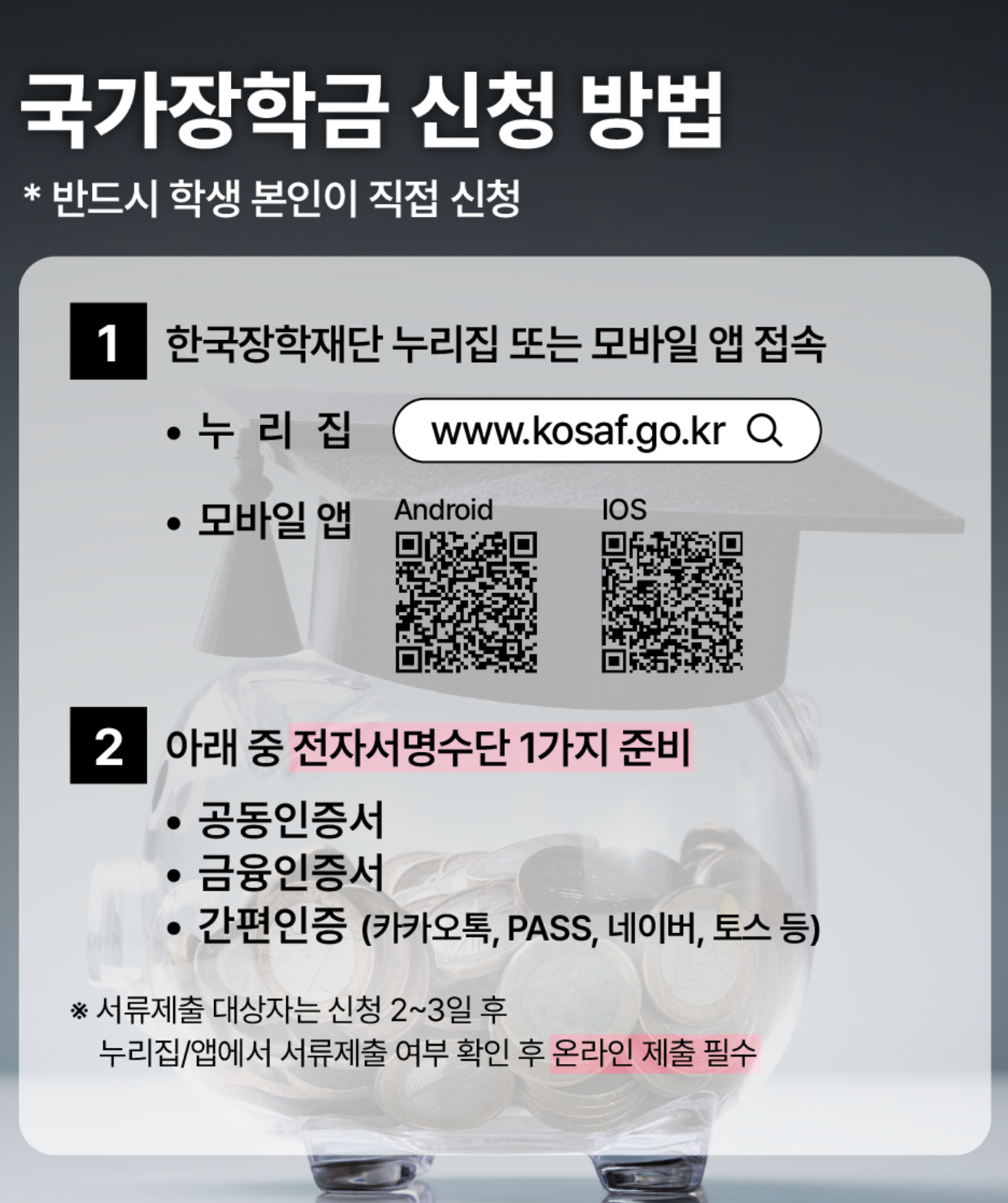 이제 모바일 앱으로 편리하게 국가장학금, 학자금대출을 신청하세요!