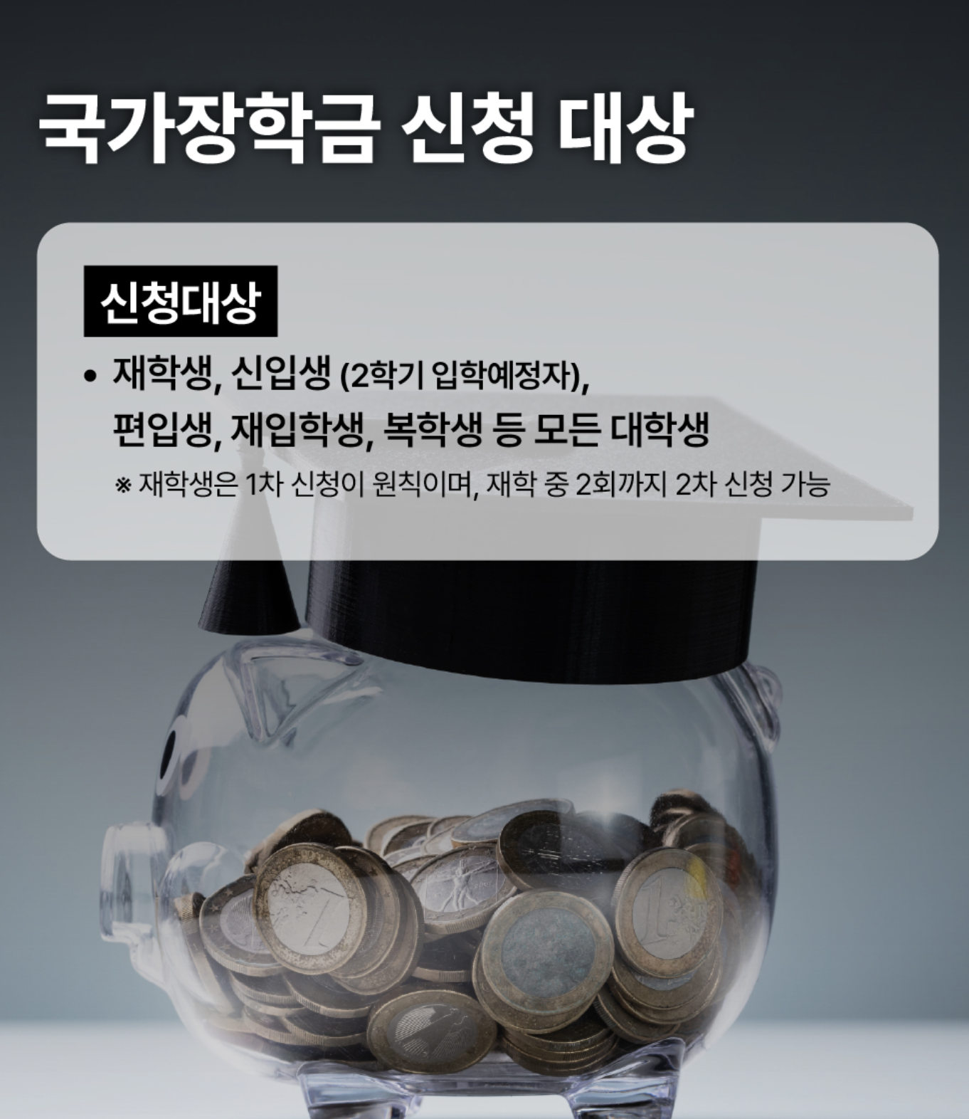 - 지원 대상: 국내 대학 재학생, 신입생, 편입생, 복학생, 재입학생 등