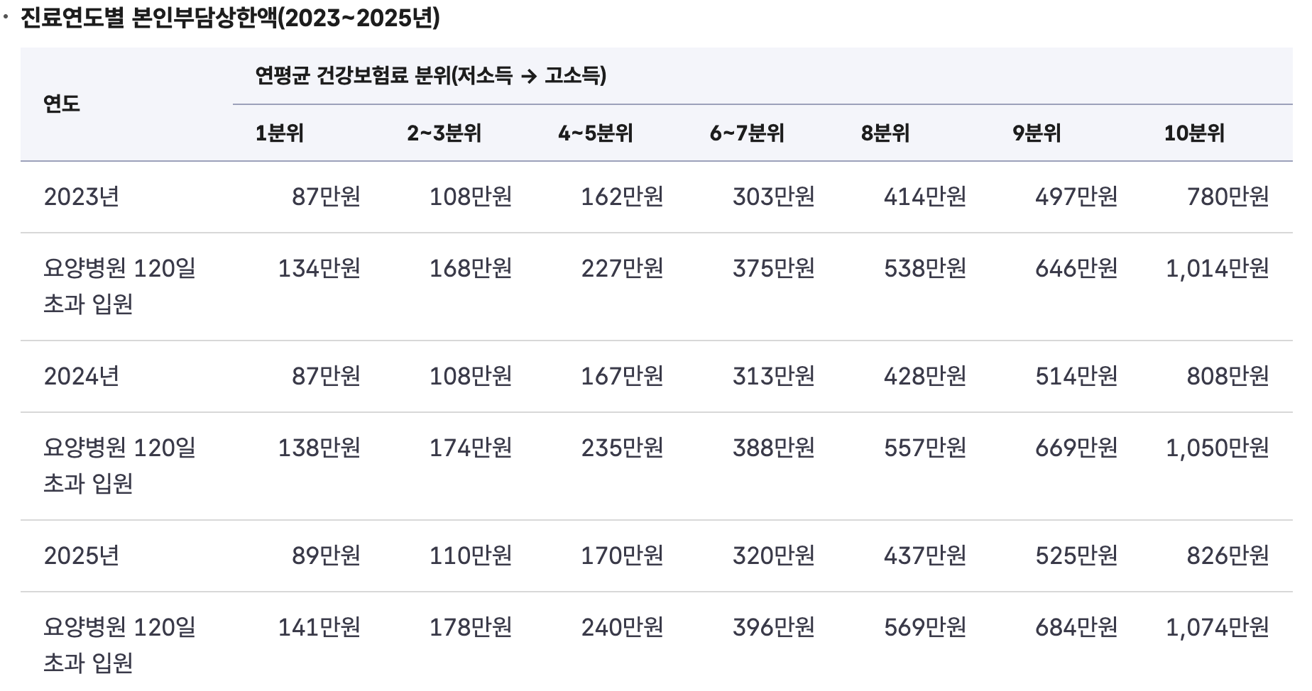 2. 본인부담상한제 소득분위 기준