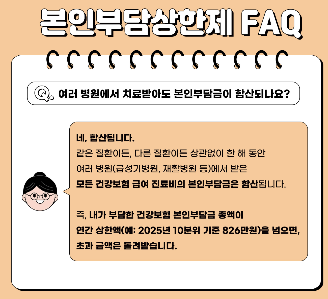 결국 본인부담상한제는 개인 가계뿐만 아니라 국가 전체적으로도 의료비 지출의 균형을 맞추는 효과가 있으며, 장기적으로 국민 건강 증진과 사회적 비용 절감에도 기여하는 제도라 할 수 있습니다.