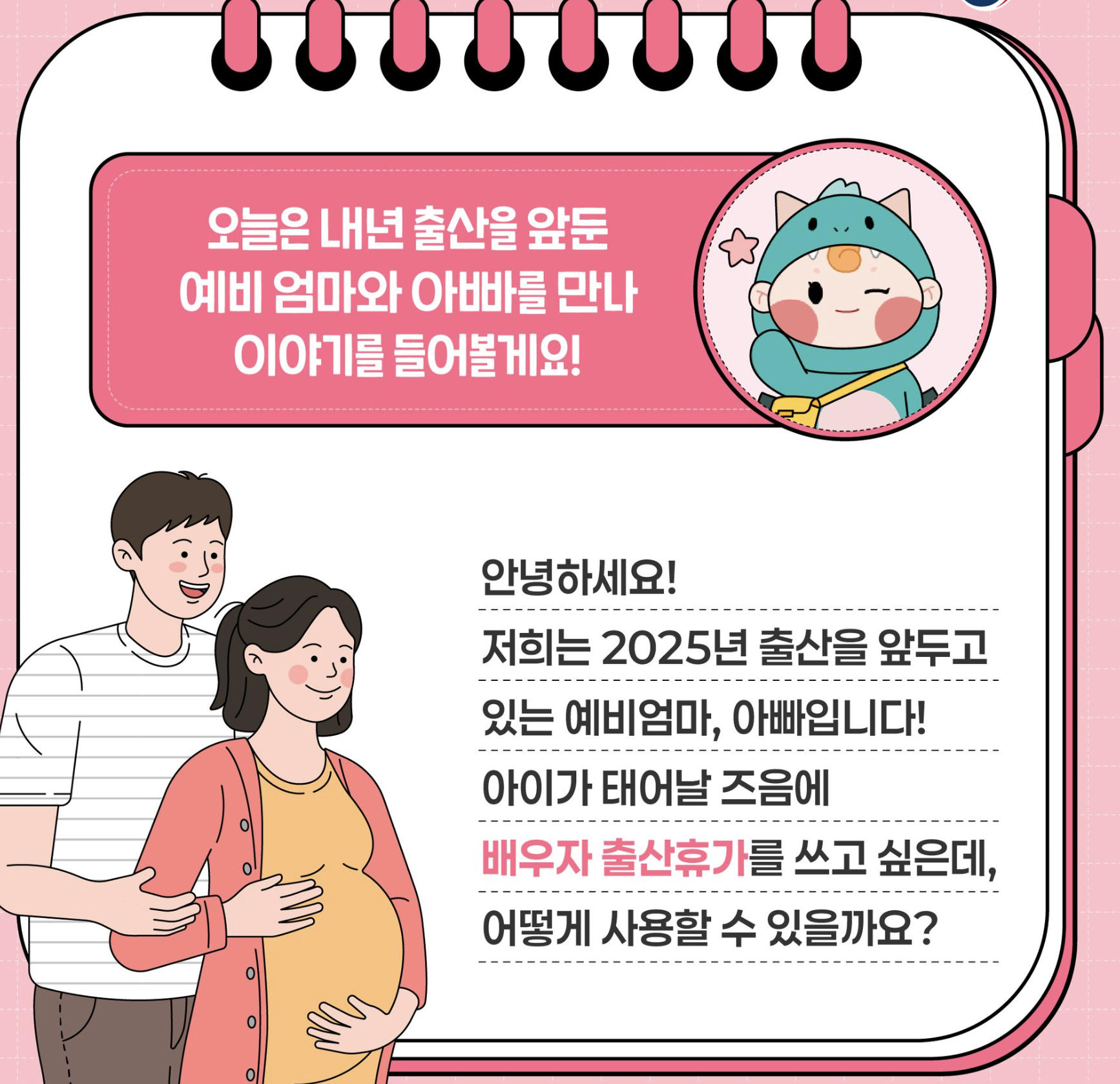 - 산모 건강 회복 지원: 출산 직후 가장 도움이 필요한 시기에 배우자가 함께할 수 있어 산모의 신체적·정신적 부담이 크게 줄어듭니다.