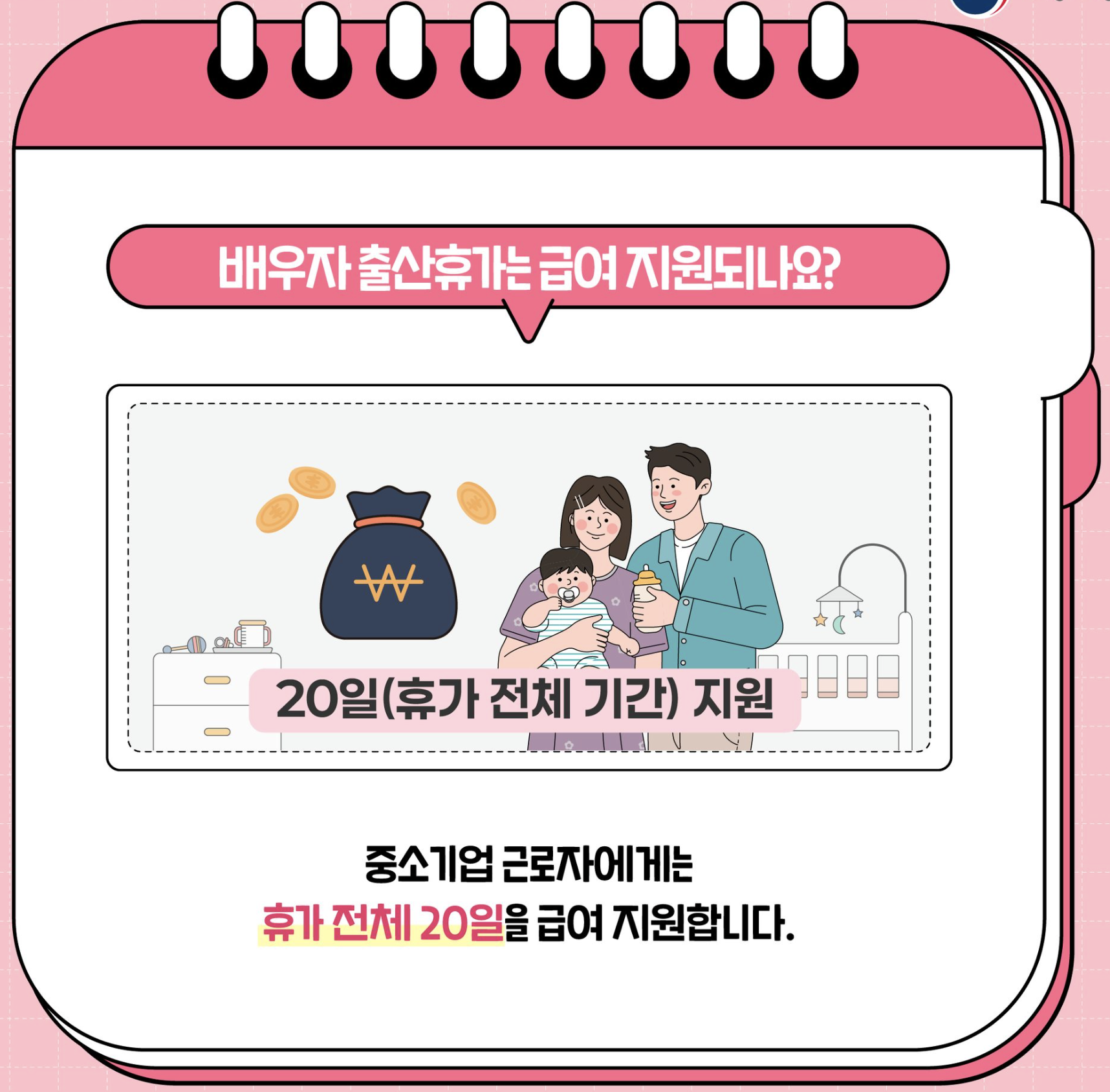 배우자 출산휴가는 단순히 휴가만 보장하는 것이 아니라, 일정 부분은 국가가 고용보험을 통해 지원금을 지급합니다.