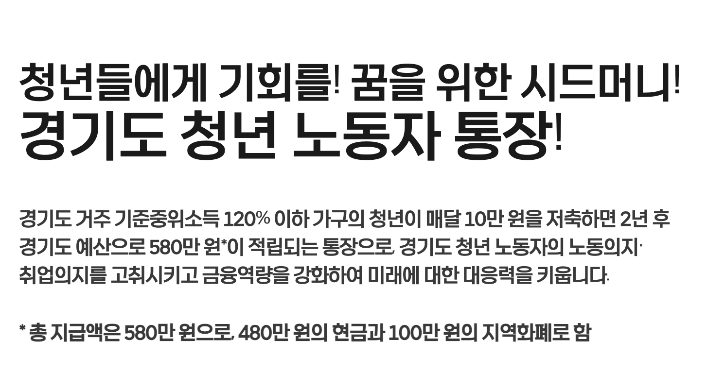 - 지원대상: 경기도에 주민등록을 두고 있는 만 24세 청년