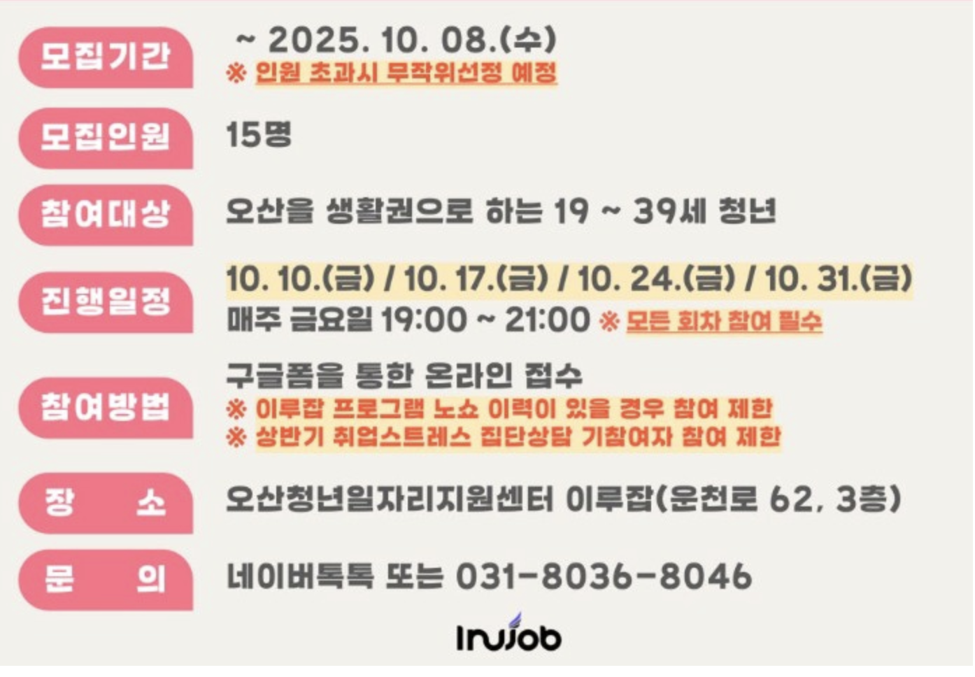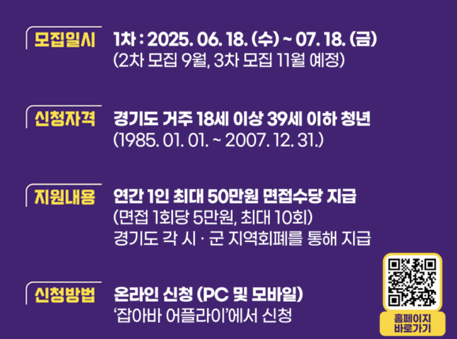 - 신청방법: 경기도 일자리재단 ‘잡아바’ 홈페이지를 통해 온라인 신청