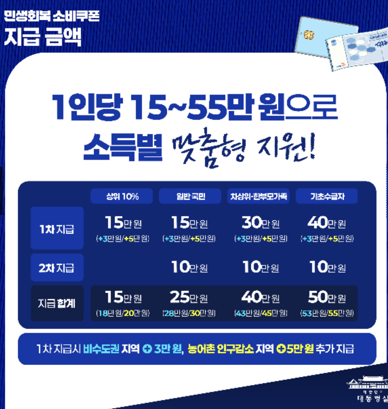 - 앱·홈페이지 이용이 익숙하지 않은 경우: 카드사 고객센터 전화 또는 민생회복소비쿠폰 콜센터 이용