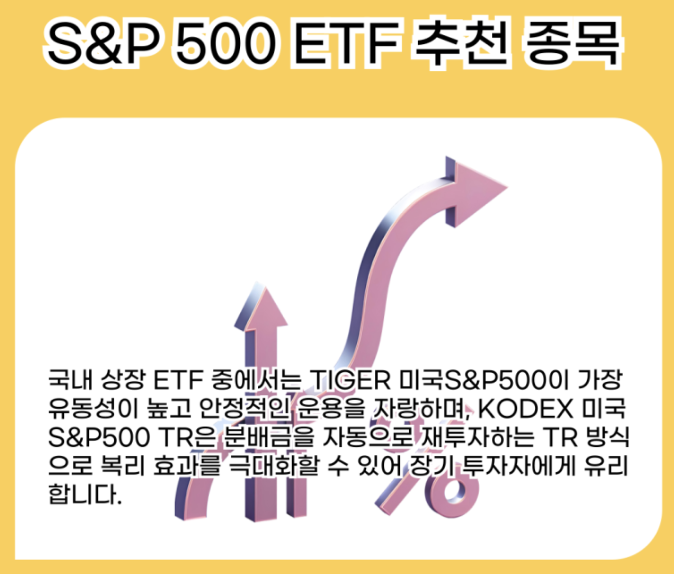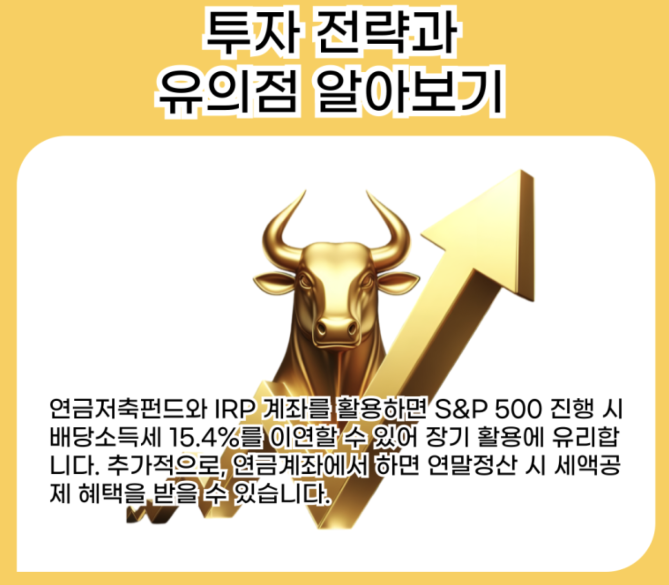 - 한국 투자자 → 한국 상장 S&P500 ETF (예: TIGER S&P500, KODEX S&P500) 활용 시 원천징수 절세 가능