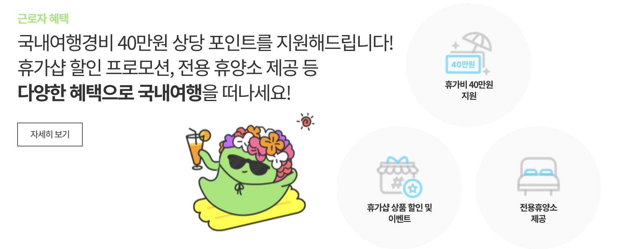 즉, 근로자 휴가 지원 사업은 단순한 금전 지원이 아니라, 근로자가 보다 계획적이고 풍성하게 휴가를 즐길 수 있도록 돕는 효율적이고 체계적인 지원 구조를 갖춘 제도라고 할 수 있습니다.