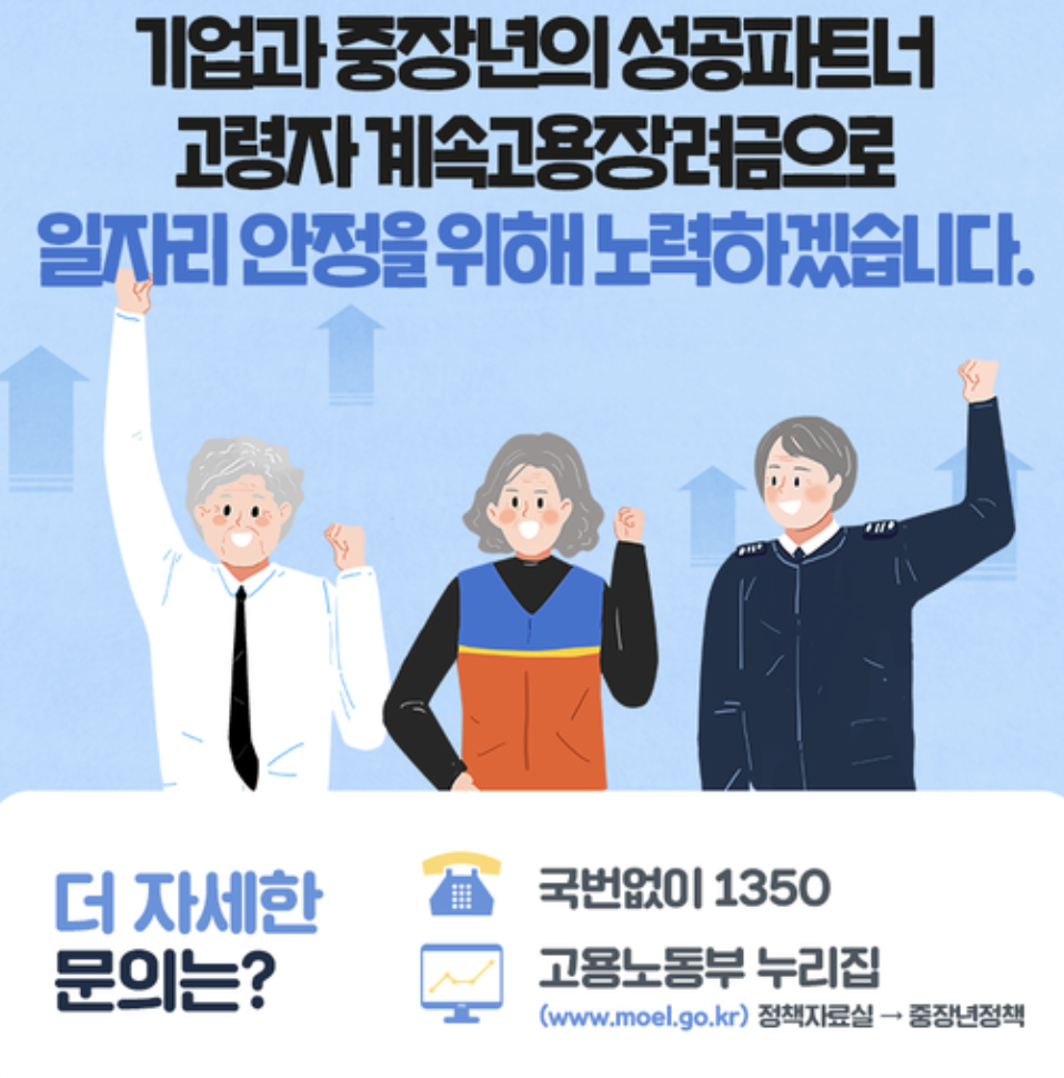 고령자 계속고용장려금은 우리나라의 급속한 고령화 사회 진입에 따른 노동력 부족 문제를 해결하고, 경험과 노하우를 가진 고령 근로자들의 고용 연장을 지원하기 위해 정부에서 시행하는 대표적인 고용정책 지원금입니다.