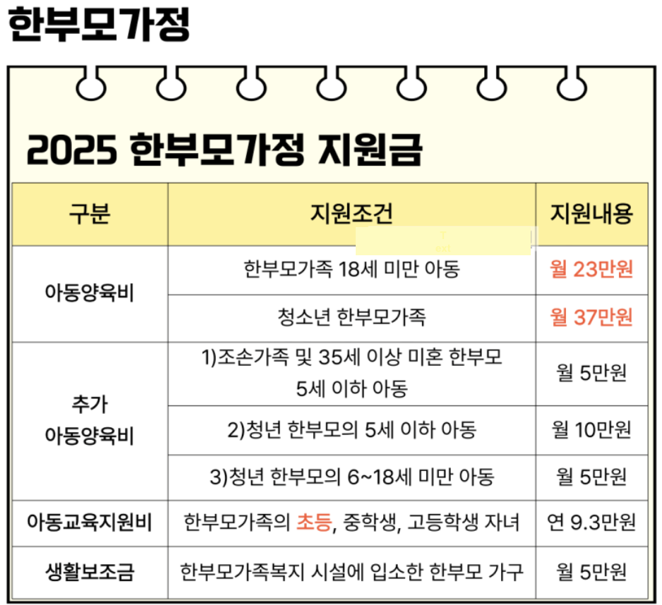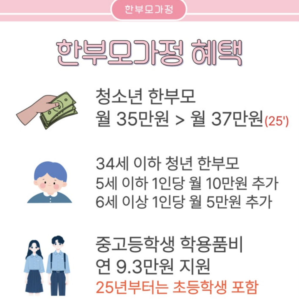 - 추가지원: 청소년 한부모의 경우 자녀 1인당 월 최대 35만 원까지 지원