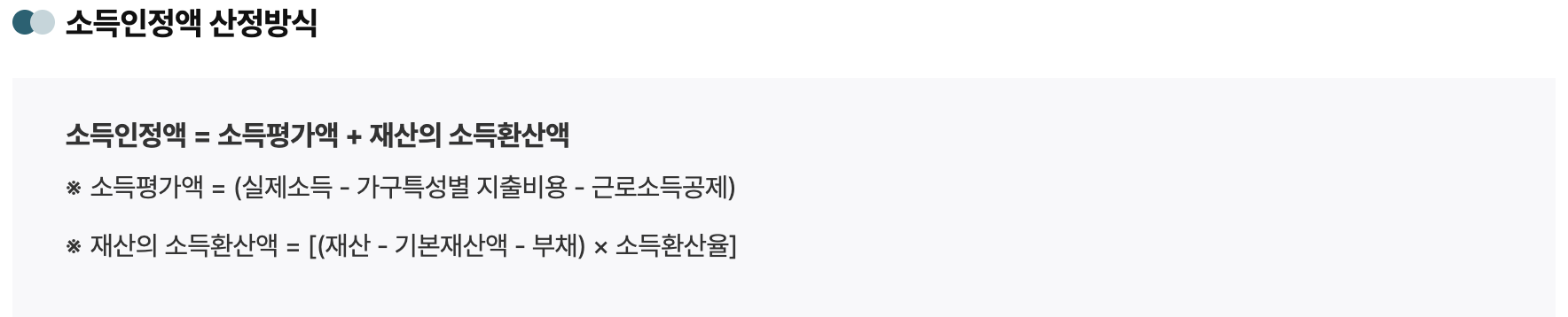 1) 소득 인정액 기준