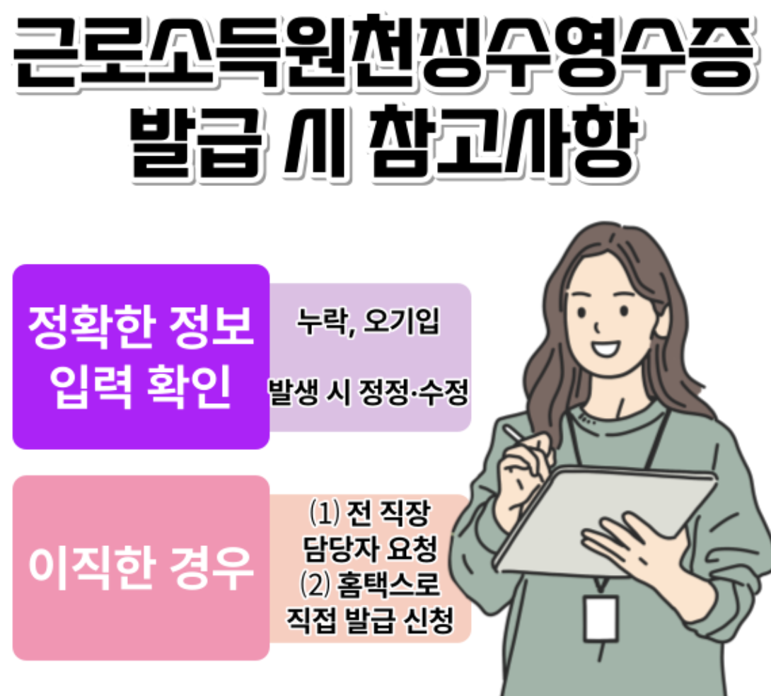 🔔 아직 원천징수영수증을 한 번도 직접 발급해본 적이 없으시다면, 지금 바로 홈택스에 접속해서 본인의 소득 내역을 확인해보세요!