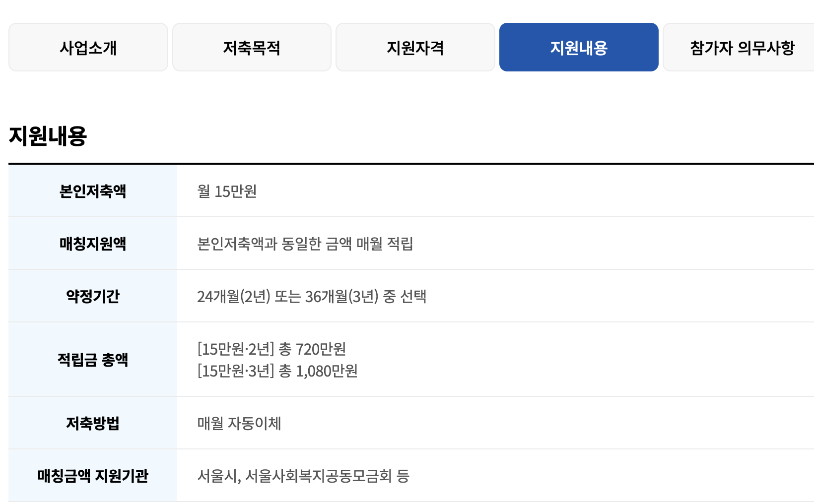 가구 소득이 높지 않거나 부모의 지원 없이 홀로 살아가는 청년이라면, 서울시의 매칭 적립금은 사실상 '지원금'에 가까운 효과를 발휘합니다.