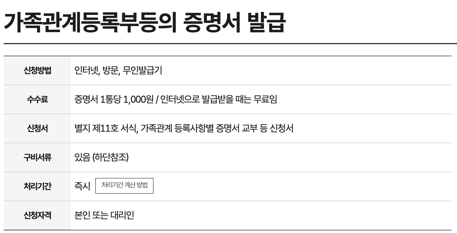 - 수수료: 무료 (단, 오프라인 민원실 방문 시에는 1통당 1,000원)