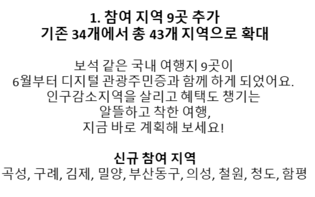 이처럼 지역의 특색과 산업에 맞춘 혜택이 다양하게 준비되어 있어, 디지털 관광주민증을 활용하면 단순한 ‘방문’을 넘어서 진짜 그 지역을 살아보는 경험을 할 수 있습니다.