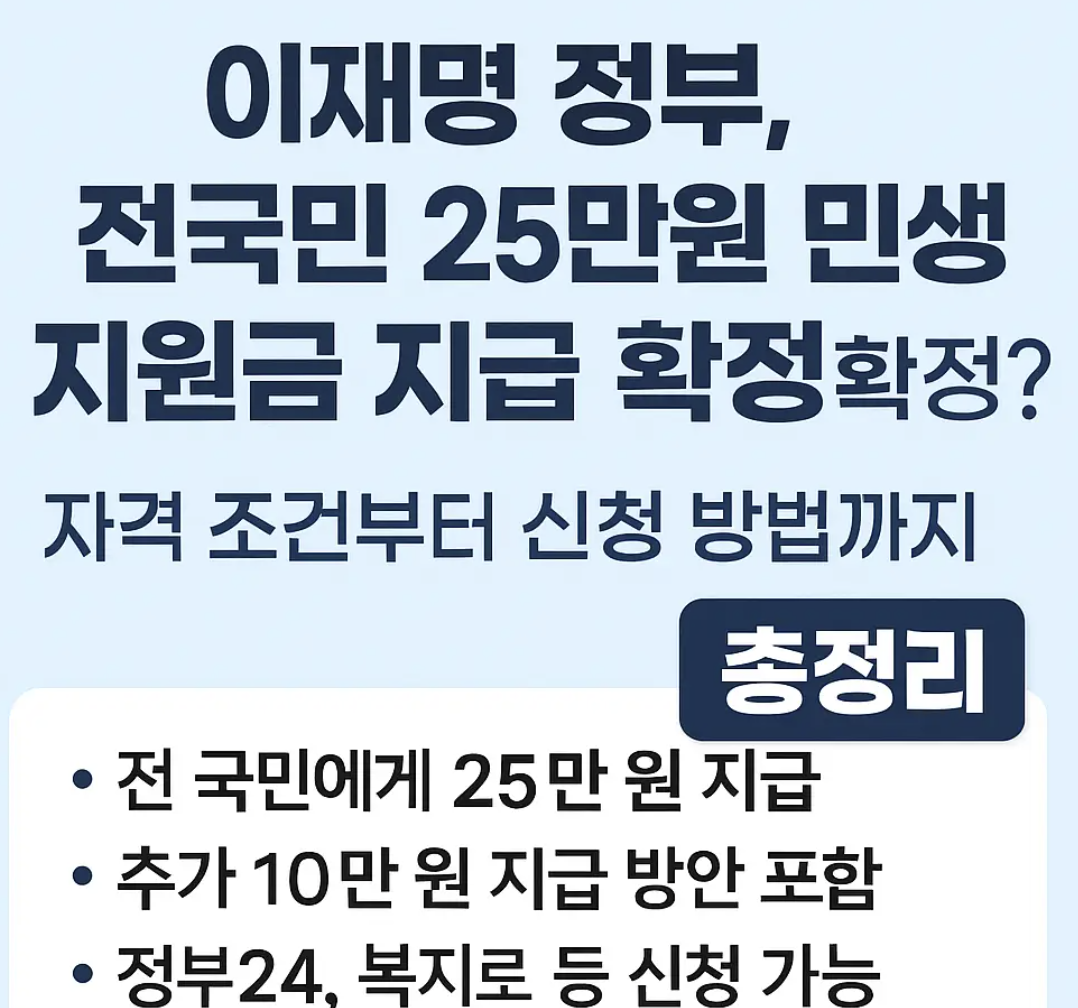| 전 국민 (기본 지급) | 소득 구간 무관, 전 국민 일괄 지급 | 25만 원 | 지역화폐 형태 |