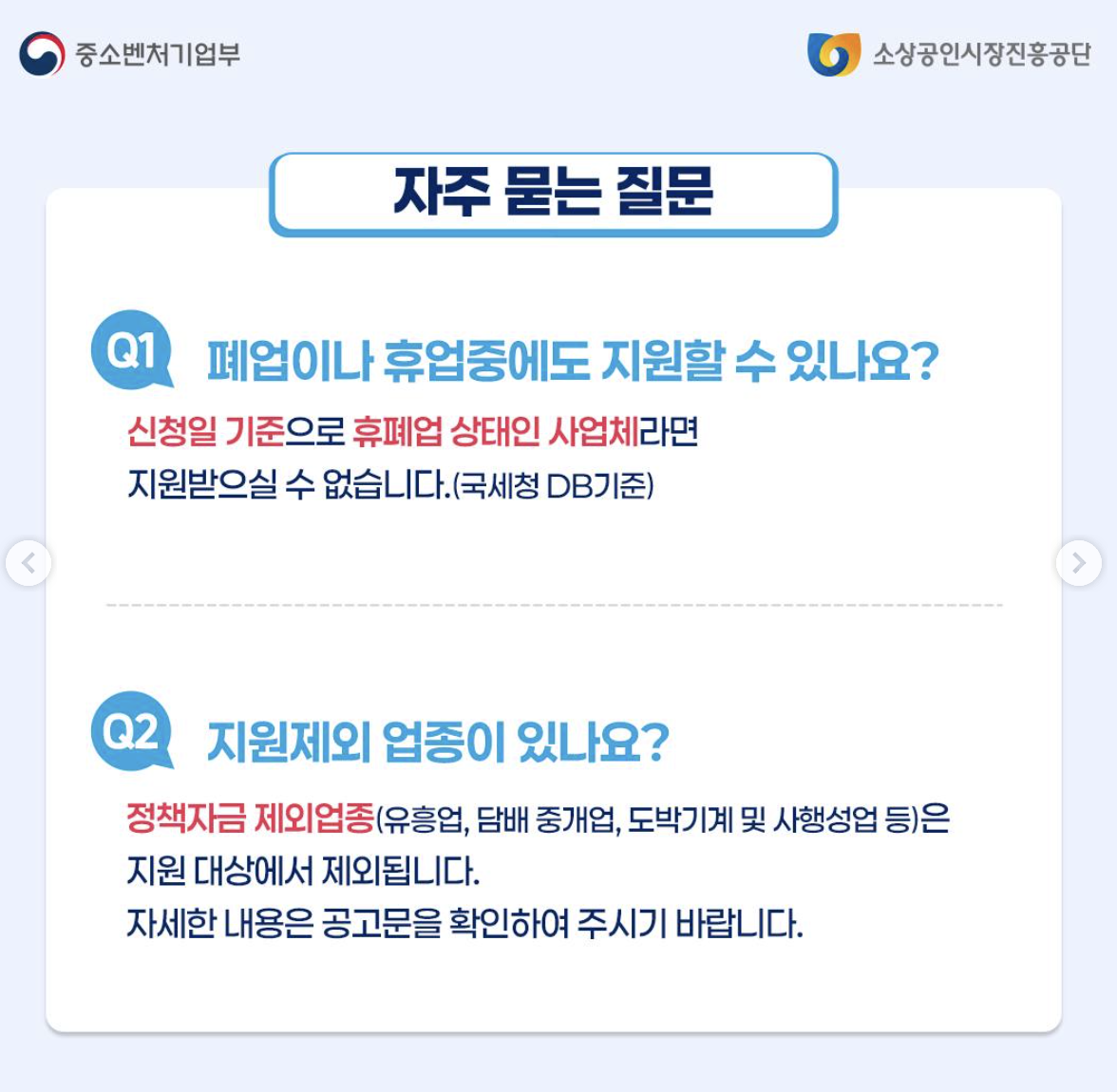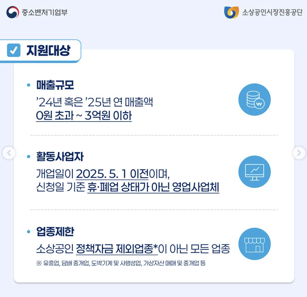 - 폐업 상태가 아닌 현재 영업 중이어야 하며, 일부 업종은 지원에서 제외될 수 있습니다.