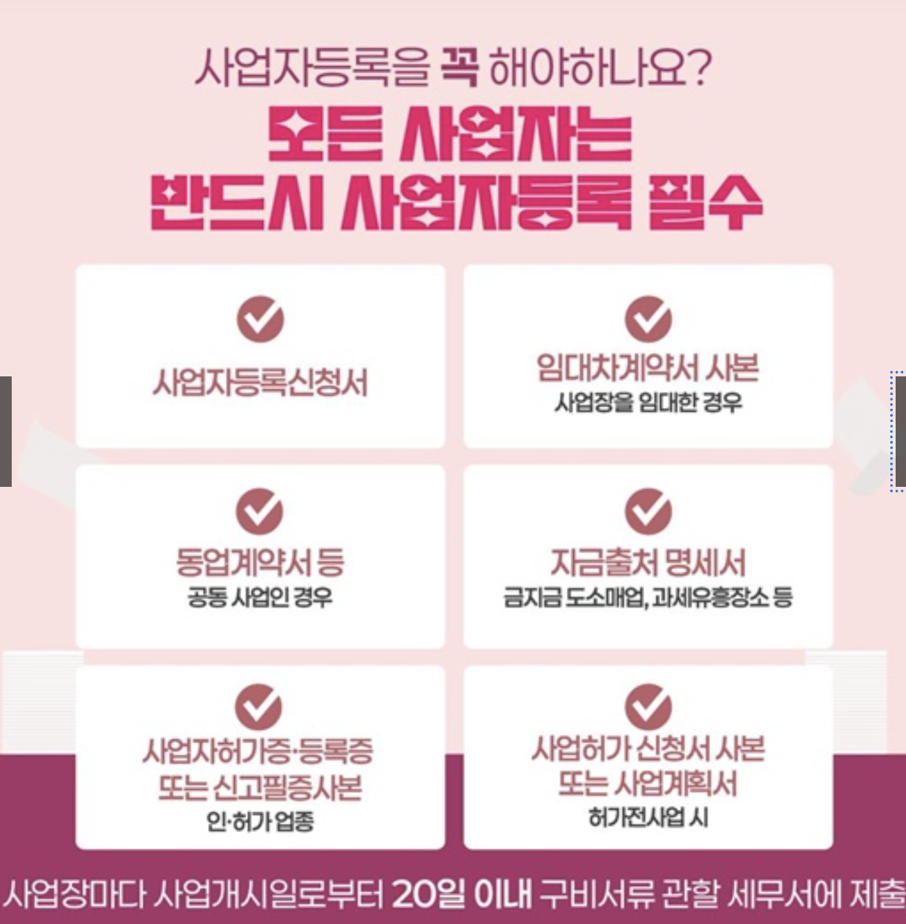 이처럼 단순히 세금을 내기 위해서만이 아니라, 합법적으로 절세와 지원 혜택을 누리기 위해서라도 사업자등록은 꼭 필요합니다.