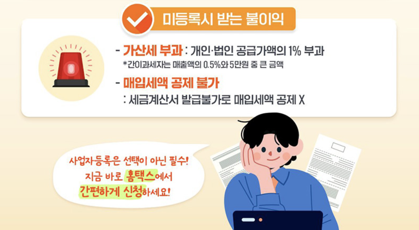특히 부업이나 투잡 형태로 사업을 시작하는 분들은 ‘소액이라 괜찮겠지’ 하고 미루다 불이익을 당하는 경우가 많습니다. 반드시 수익이 발생하기 전 미리 등록하는 것이 안전합니다.