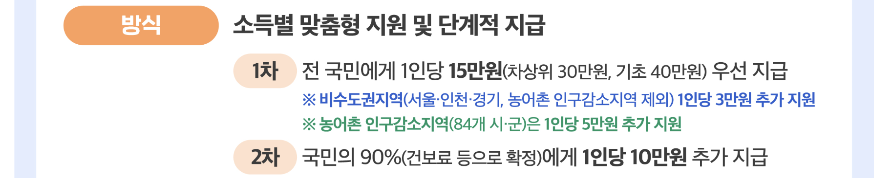 1) 전 국민 대상: 1인당 15만 원 기본 지급