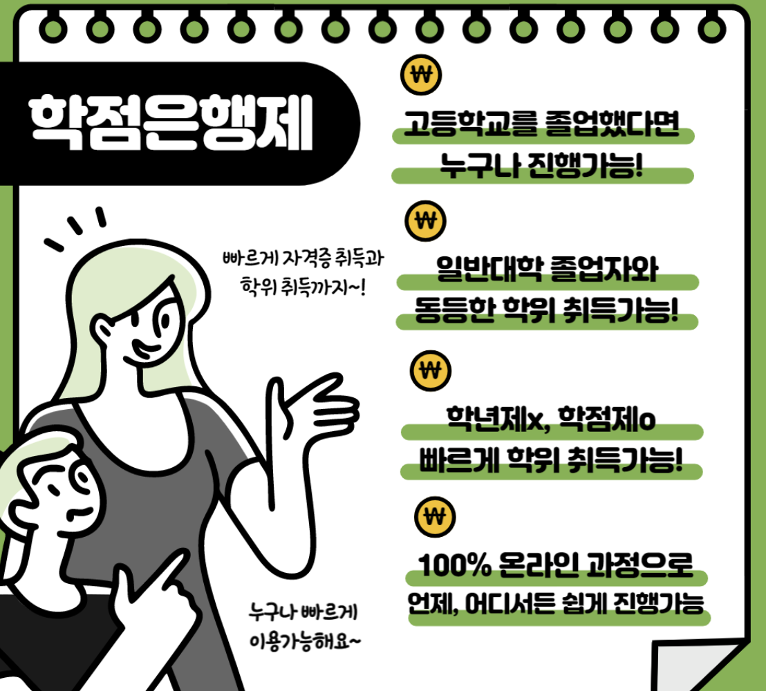 즉, 단순히 자격증만 얻는 것이 아니라 학력까지 업그레이드할 수 있어 학위 + 자격증 동시 취득 효과가 있습니다.