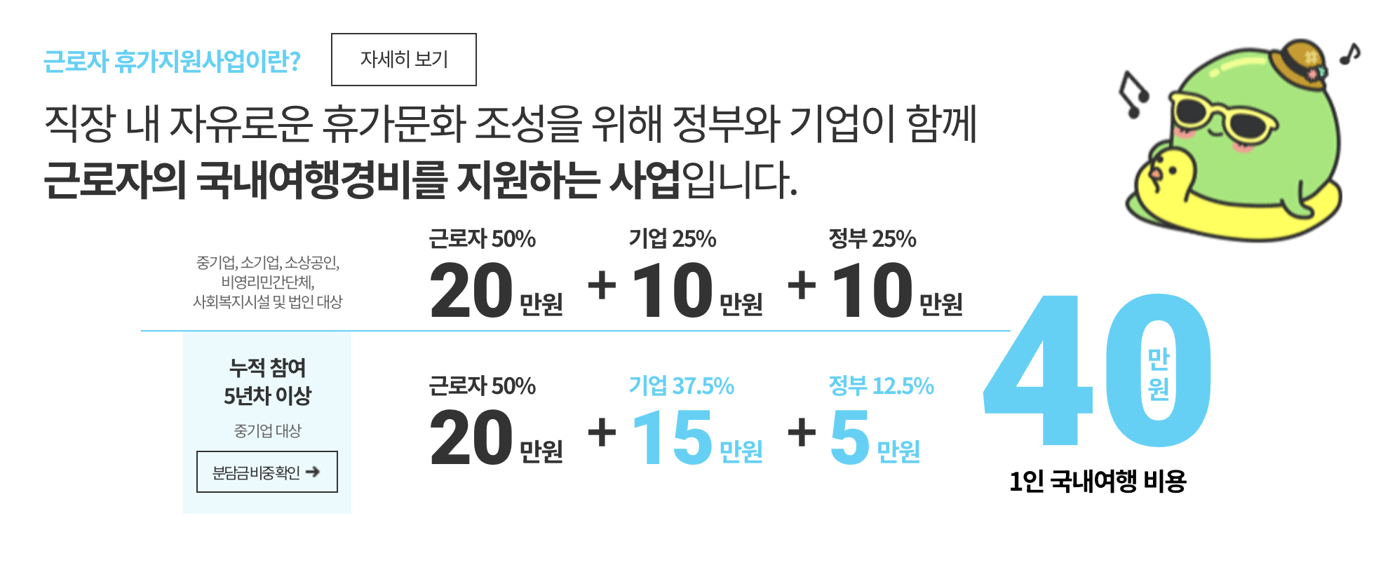 근로자 휴가 지원 사업은 문화체육관광부와 한국관광공사가 주관하는 정부 지원 제도로, 바쁜 일상과 경제적 부담으로 휴가를 제대로 사용하지 못하는 근로자들에게 국내 여행 비용을 지원하는 제도입니다. 이 사업은 근로자가 일정 금액을 적립하면 기업과 정부가 추가로 지원하여, 근로자가 실제보다 훨씬 저렴하게 국내 여행을 즐길 수 있는 혜택을 제공하는 것이 특징입니다.