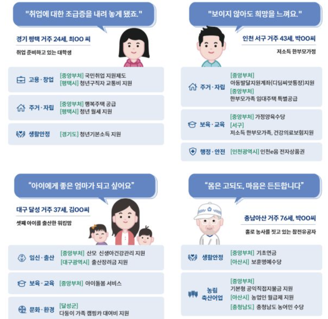 - 통합 검색 시스템으로 여러 부처의 지원금을 한 번에 검색할 수 있습니다.