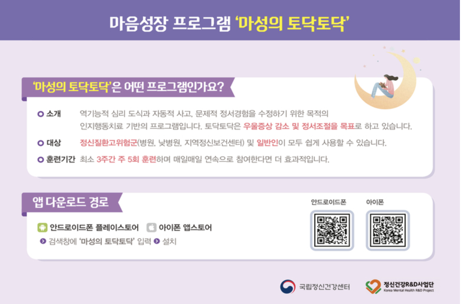 이러한 현실을 반영해 정부는 **‘전국민 마음투자 지원사업’**을 통해 누구나 심리적 어려움을 느낄 때, 부담 없이 전문가의 상담을 받을 수 있도록 적극적인 지원 정책을 시행하고 있습니다.