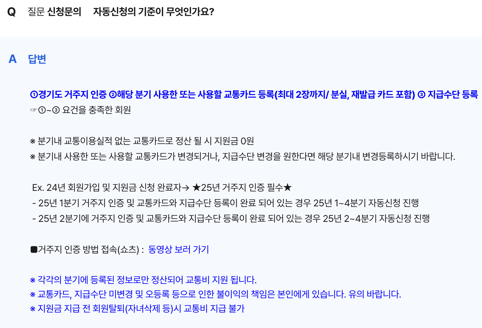 정리하자면, 교통비를 지출한 것만으로는 자동으로 환급되지 않기 때문에, 매 분기 신청 포털을 꼭 확인하고 직접 신청을 완료하는 것이 이 제도의 핵심입니다.